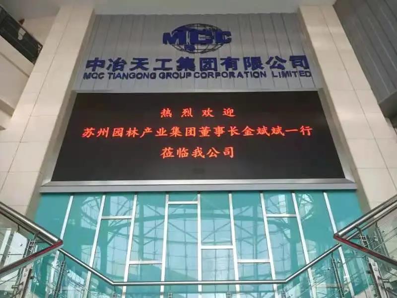 2021年3月30日下午,苏州园林产业集团董事长金斌斌一行带队赴中冶天工集团会见集团公司党委书记、董事长周青,双方就有关项目合作进行了亲切会谈。
